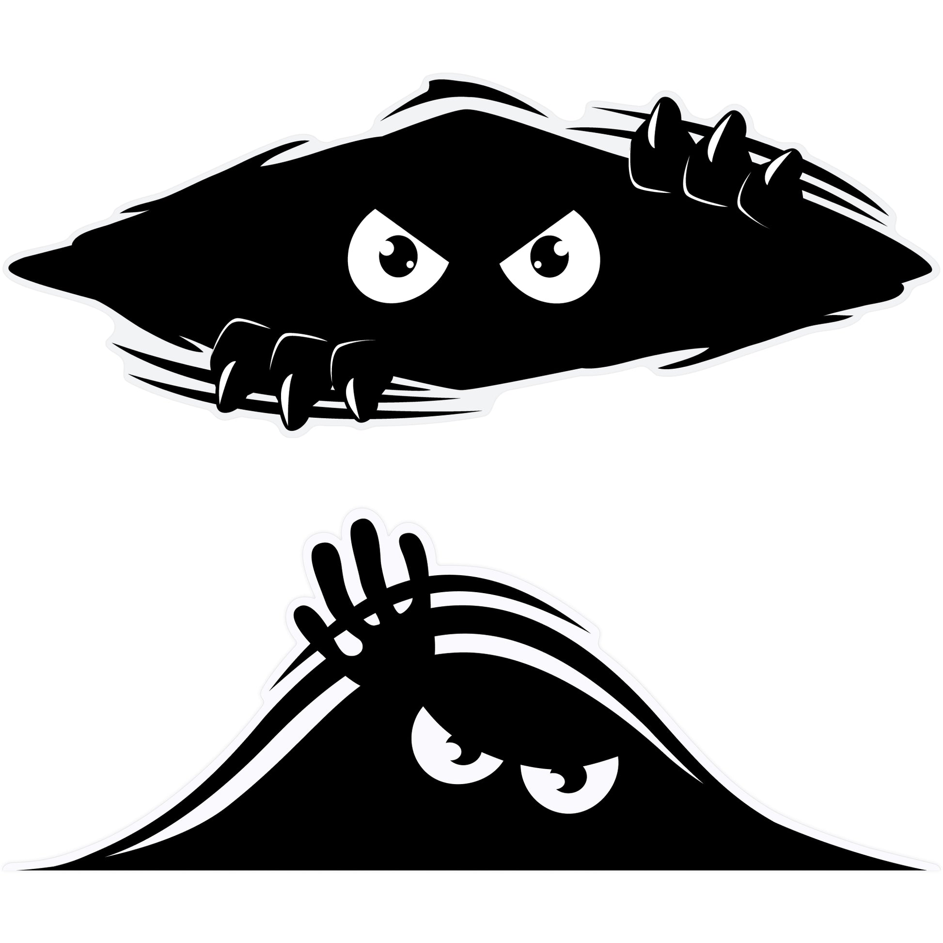 Two monsters are better than one. This bundle pairs Shredder and Peekaboo, our most popular peeker stickers, into one double-feature decal set. One is bold and intense. The other is curious and playful. Together, they turn any smooth surface into something that looks like it's watching back.